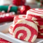 Keywords: Peppermint swirl cookies, sugar cookies, holiday cookies, peppermint extract cookies, red and white swirl cookies