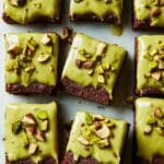 Pistachio brownies offer a wonderful twist on the classic chocolate treat, combining rich cocoa with the nutty flavor of pistachios. These brownies are layered with a creamy pistachio-white chocolate ganache and finished with crunchy pistachio topping for a delightful texture contrast.