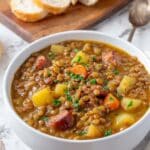 Store leftover soup in an airtight container in the refrigerator for up to 4 days. Lentil soup tends to thicken as it cools; add a splash of water or broth when reheating on the stove over medium heat to reach your desired consistency. It also freezes well for up to 3 months—thaw overnight in the fridge before warming.