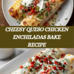 This Queso Chicken Enchiladas Bake is a creamy, cheesy, and flavorful casserole featuring tender shredded chicken wrapped in soft flour tortillas, smothered in a rich queso blanco cheese sauce with diced tomatoes and green chilies. Baked to bubbly perfection, it’s a comforting Mexican-inspired dish perfect for family dinners or gatherings.