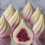 Keywords: Chocolate bonbon, ruby chocolate, white chocolate, freeze-dried raspberry, tempering chocolate, gourmet chocolates, chocolate dessert