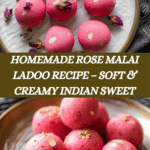 Keywords: Rose Malai Ladoo, Indian sweet, chena ladoo, rose syrup dessert, cardamom, homemade ladoos, milk sweets