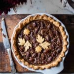 This Salted Bourbon Pecan Pumpkin Pie combines the classic flavors of pumpkin pie with a rich, buttery pecan topping sweetened with maple syrup and enhanced with bourbon and a touch of salt. It’s the perfect holiday mash-up dessert, offering a balance of sweet, spicy, nutty, and salty flavors with an optional chocolate chip addition to customize it to your preference. This easy-to-make pie can be prepared up to two days in advance, making it a festive favorite for Thanksgiving, Christmas, or any cozy autumn occasion.