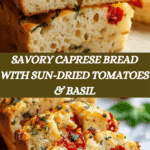 Savory Caprese Bread is a delightful Italian-inspired loaf bursting with fresh basil, sun-dried tomatoes, and melted mozzarella cheese. This moist, flavorful bread is perfect for a snack, appetizer, or alongside a meal. Easy to make and utterly delicious, it brings the vibrant flavors of Caprese salad into a comforting bread form.