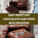 Keywords: sheet pan chocolate cake, easy chocolate cake, chocolate sheet cake, chocolate frosting, party cake, chocolate dessert, easy baking