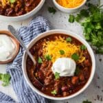 - Step 9: Spoon the chili into serving bowls and add your favorite toppings like shredded cheese, sour cream, or fresh cilantro.