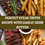 Classic French-style Steak Frites featuring perfectly seared New York strip steaks cooked with aromatic butter, garlic, and herbs, paired with crispy homemade fried russet potato fries. A timeless combination that brings restaurant-quality flavors to your home kitchen.