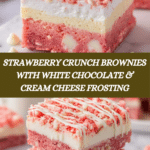 These Strawberry Crunch Brownies combine a moist strawberry cake mix base with creamy frosting and a crunchy strawberry-infused cookie topping for a delightful layered dessert bursting with berry flavor and texture.