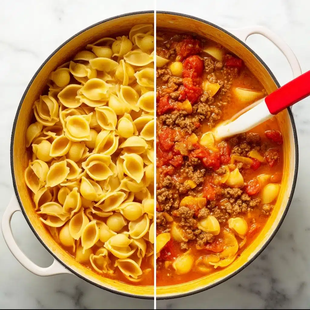 Start by heating a deep pot or dutch oven over medium-high heat and cook your ground beef until it’s fully browned and crumbly. This is the moment the hearty aroma fills your kitchen, creating the flavor foundation for your Taco Pasta – One Pot! Don’t forget to drain any excess grease to keep that sauce from becoming oily.