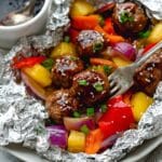 Keywords: teriyaki meatballs, foil packet recipe, grilled meatballs, pineapple meatballs, easy grilling recipe, quick dinner, Asian-inspired meatballs
