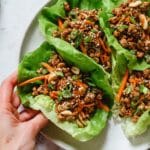 These Thai Chicken Lettuce Wraps combine savory ground chicken cooked with fresh garlic, ginger, and onions, tossed in a flavorful Thai sweet chili sauce with tamari, lime juice, and a touch of maple syrup. Topped with crunchy cashews, fresh scallions, cilantro, shredded carrots, and sesame seeds, all served in crisp butter lettuce leaves for a light, fresh, and delicious appetizer or light meal.