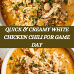 The Ultimate White Chicken Chili is a flavorful, comforting dish that comes together in under 20 minutes thanks to the use of rotisserie chicken. Packed with tender chicken, white beans, corn, and a blend of spices, this chili is perfect for game day or any cozy evening.