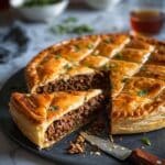 Turkish Spiral Borek with Spiced Ground Beef is a savory pastry that combines crispy phyllo dough with a flavorful, aromatic filling. This dish is perfect for gatherings or a comforting meal at home, offering a delightful blend of textures and spices.