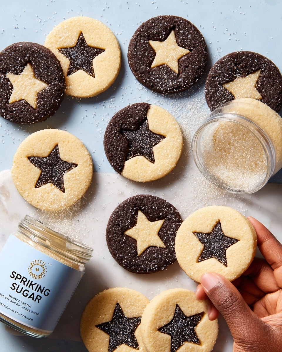 - Cookies can be decorated further with sparkling sugar for festive shine.